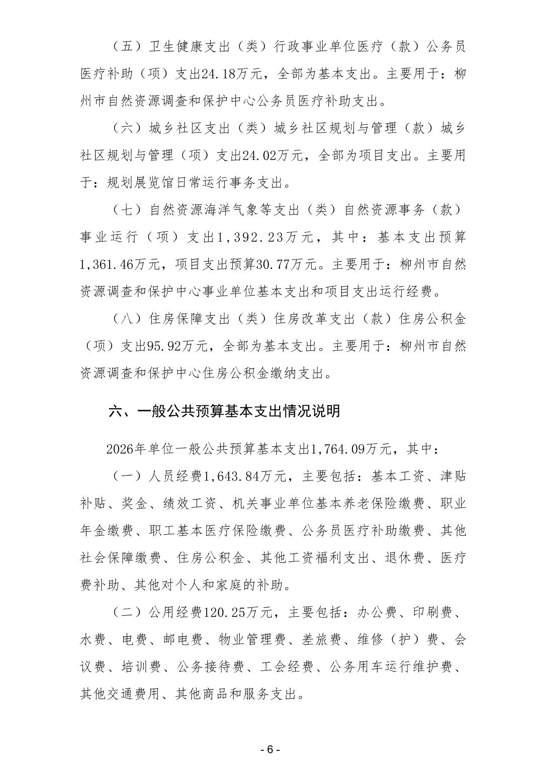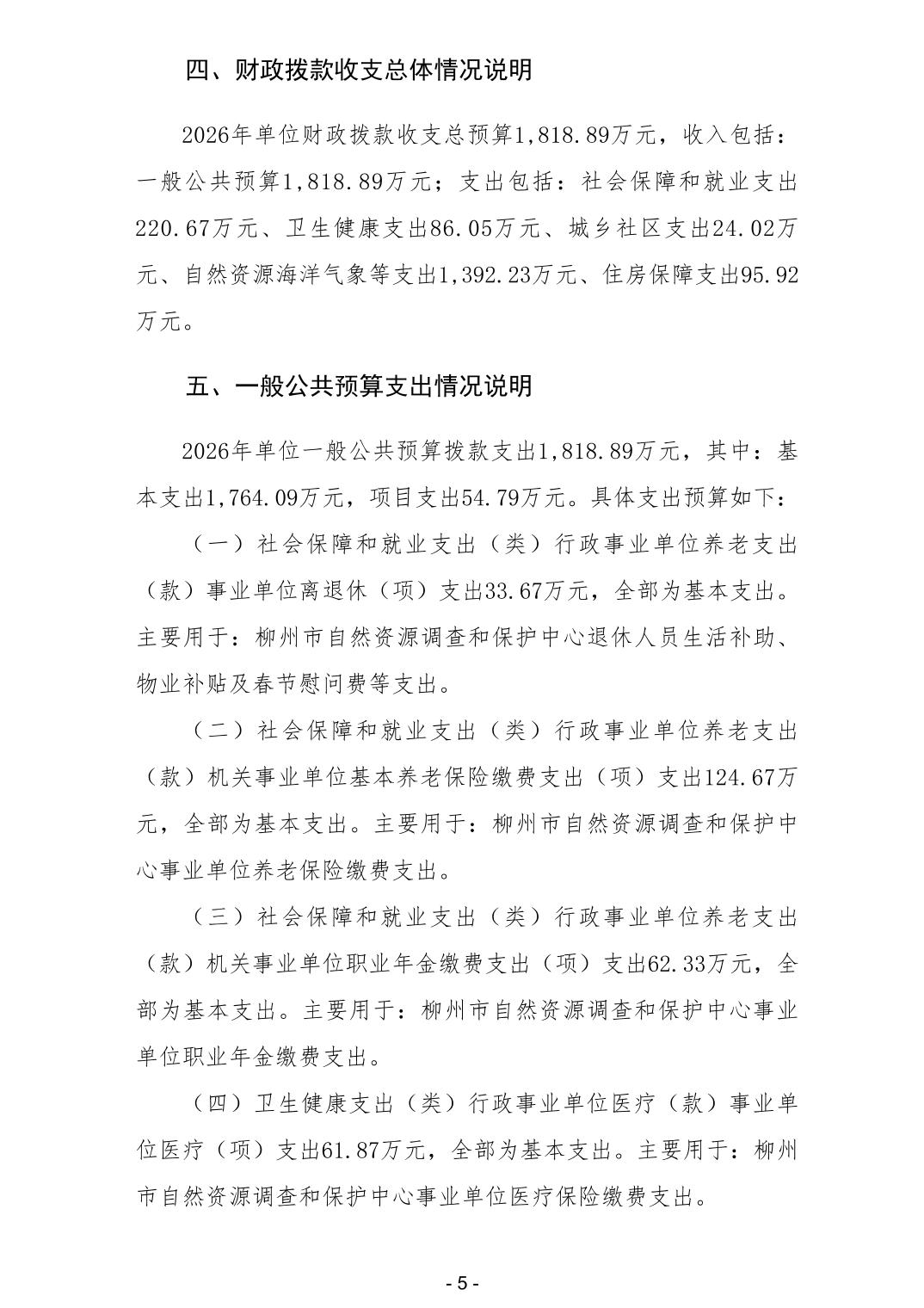 柳州市自然资源调查和保护中心2026年单位预算公开说明