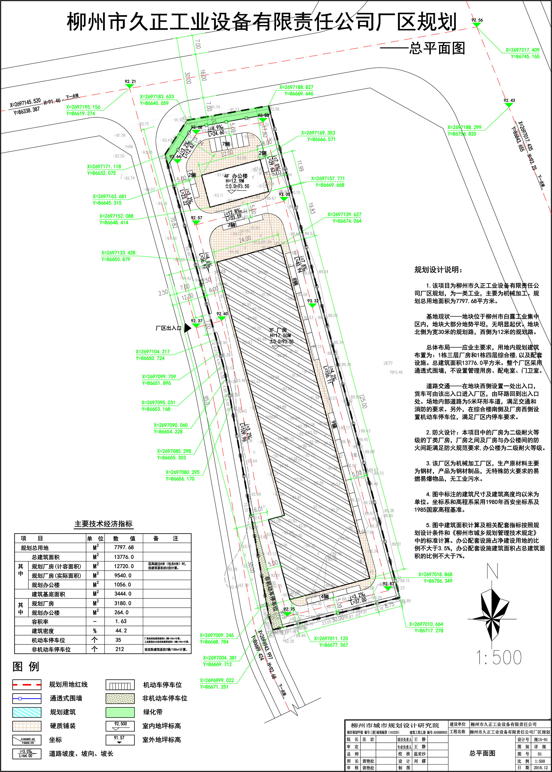 “柳州市久正工业设备有限责任公司厂区”规划总平(2016-0055#)