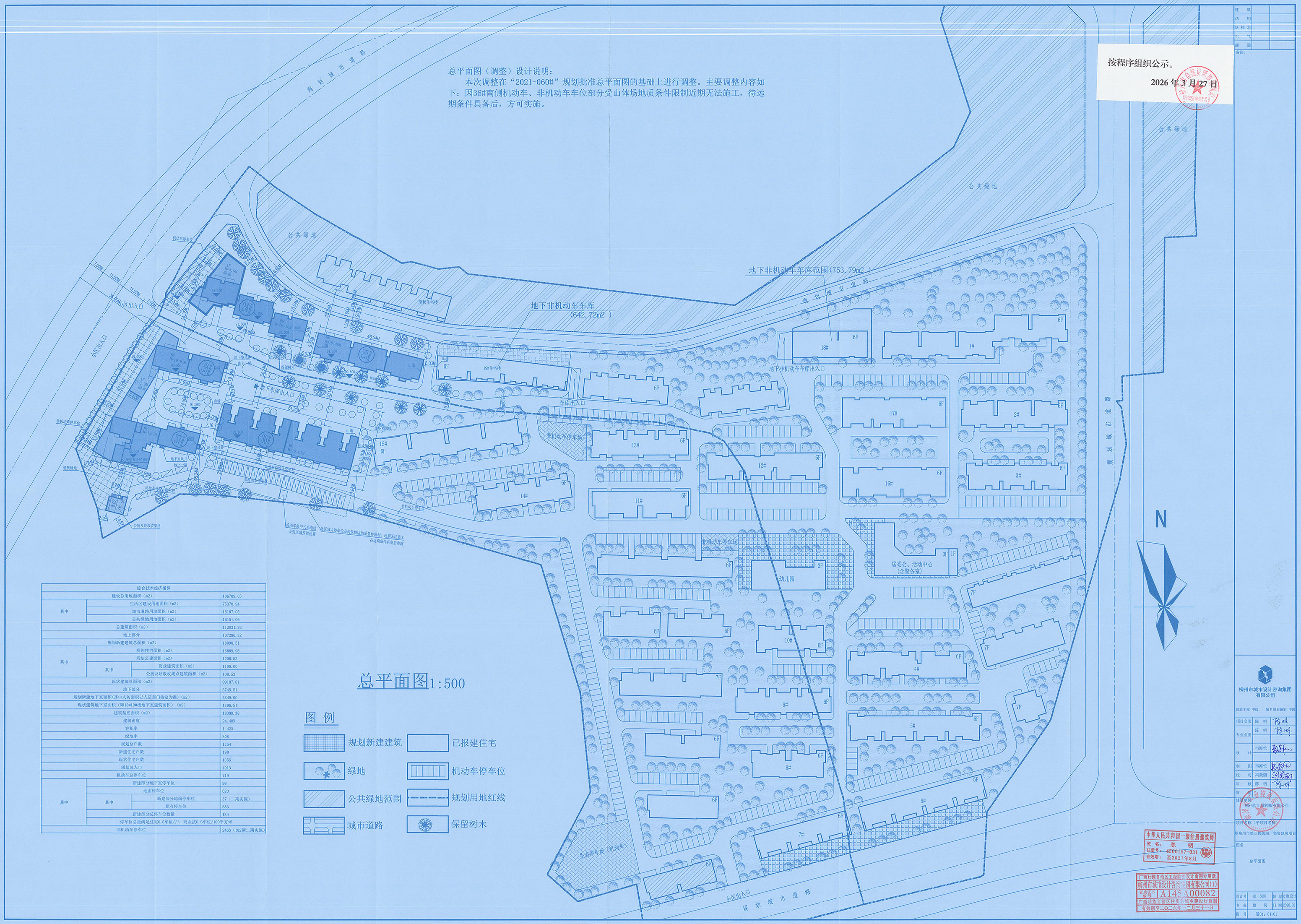 柳州市工业控股有限公司建设位于柳东路原柳州市第三棉纺织厂集资建房项目规划总平(2021—060#)曾于2021年2月9日经我局批准。因在规划核实阶段发现,该项目公厕及垃圾收集点与部分机动车位设计位置地处于山脚,存在危石滚落隐患。为减少山体破坏、防范落石风险,现柳州市工业控股有限公司根据实际开发建设需要向我局提出申请,拟对原柳州市第三棉纺织厂集资建房项目规划总平进行调整。此次规划方案调整内容为: