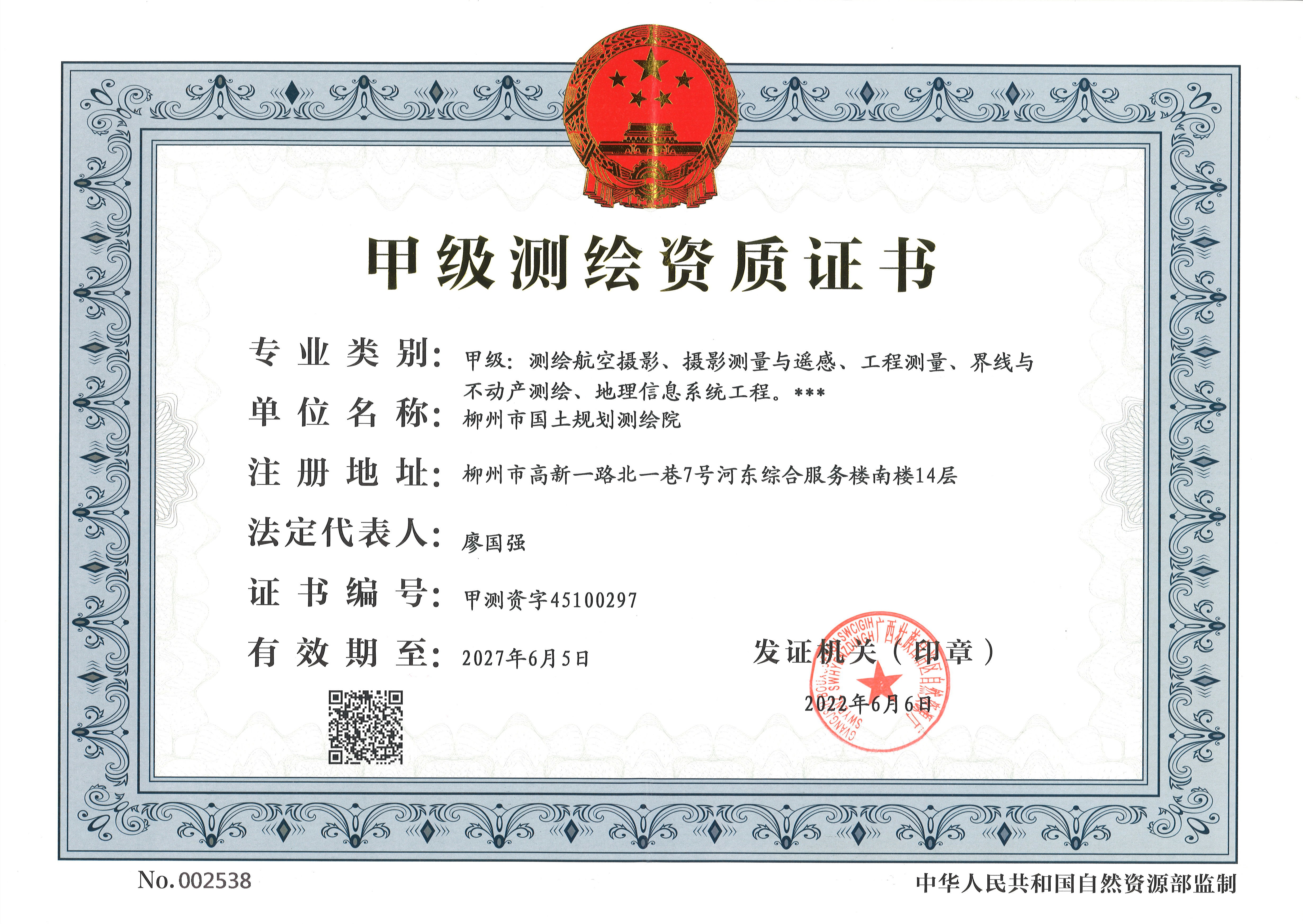 2022年6月,柳州市国土规划测绘院(下称“测绘院”)申报的四项甲级测绘资质(工程测量、航空摄影、摄影测量与遥感、地理信息系统工程)顺利通过广西壮族自治区自然资源厅审批,连同2013年取得的界线与不动产测绘甲级资质。至此,柳州市国土规划测绘院五大专业测绘资质均升级为甲级。
